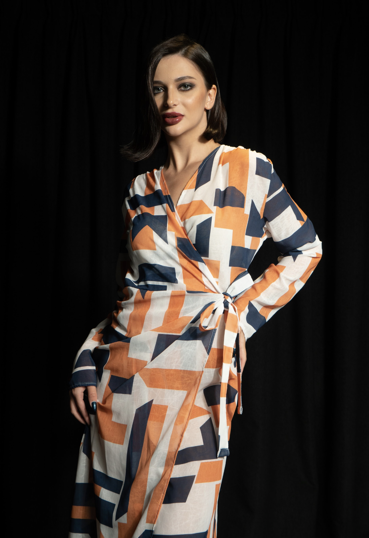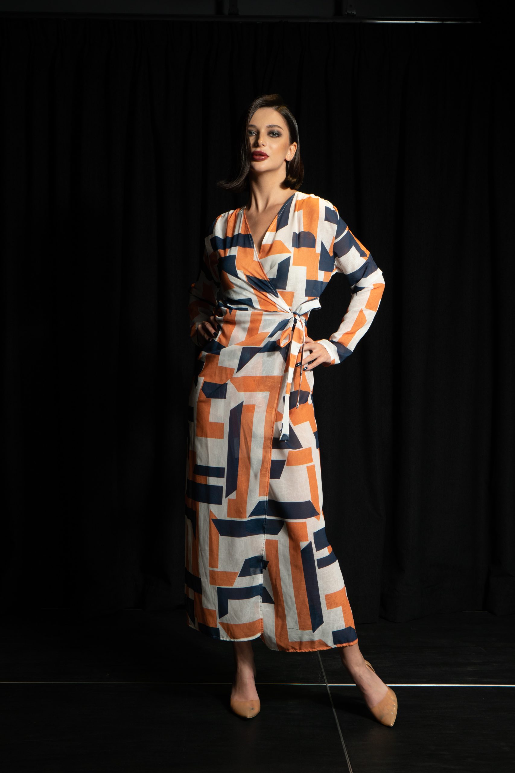 فستان طويل ملفوف | شفاف | كريب. الأحجام المتوفرة: S ، M ، L